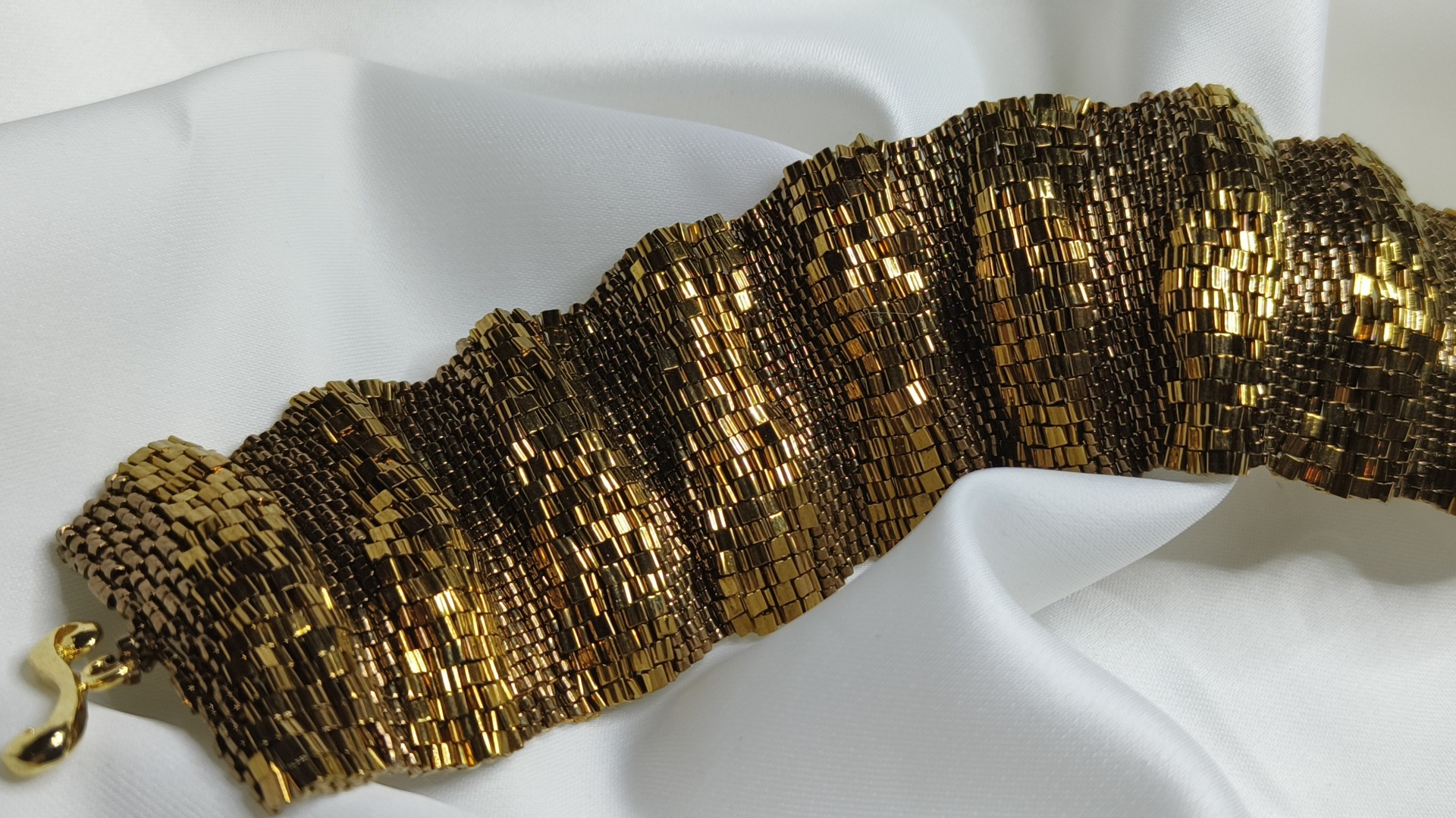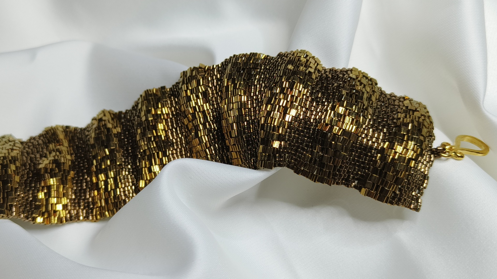 Bratare din margele de sticla japoneza cu inchizatoare eleganta suflata cu aur.
