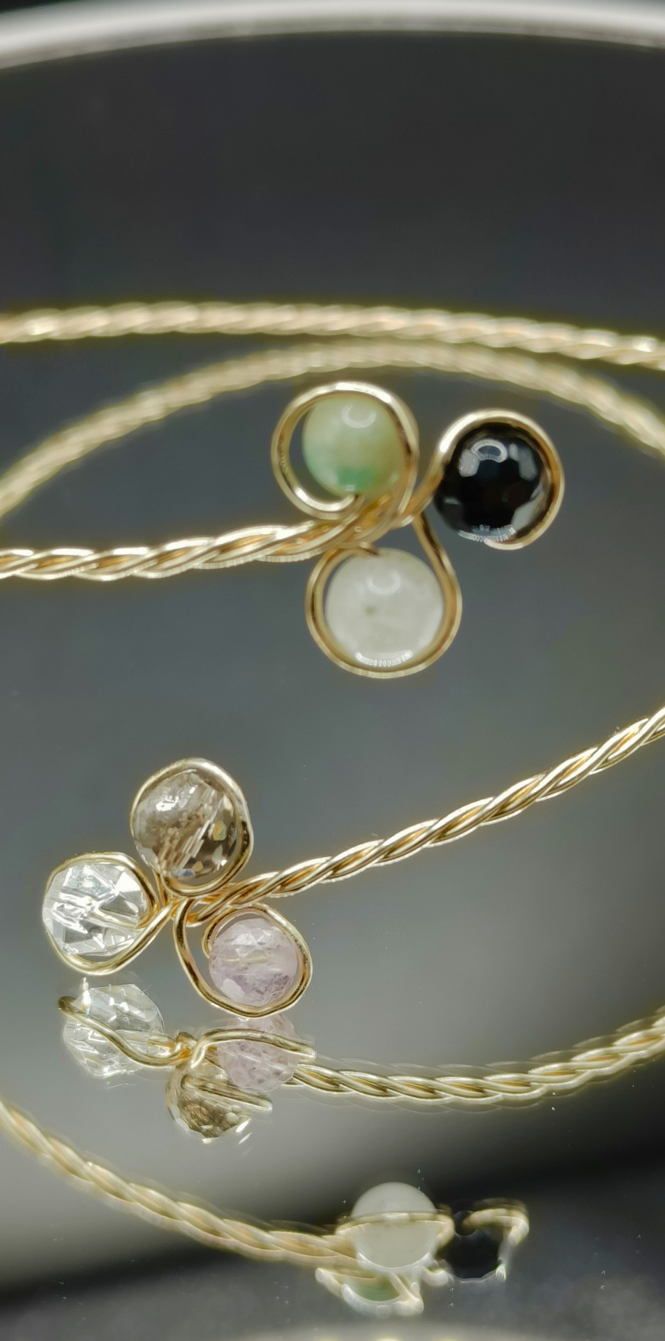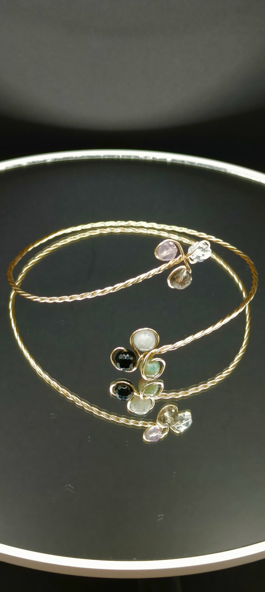 Bratara din cupru sau cupru aurit cu cristale naturale.