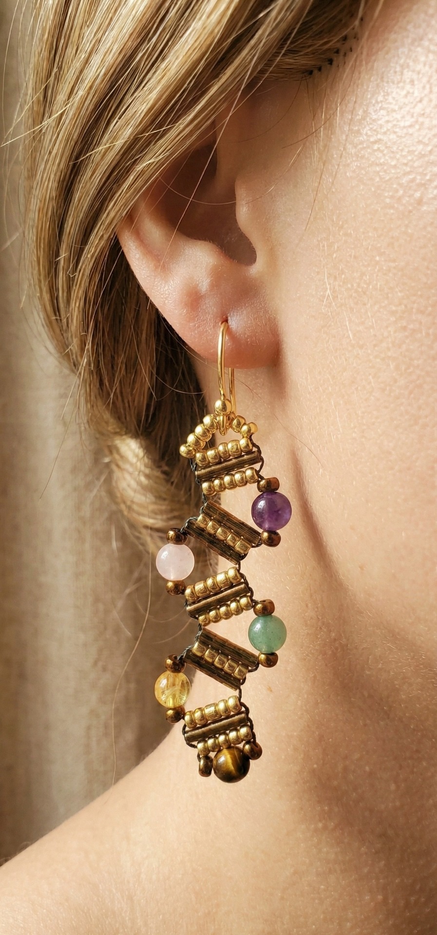 Cercei din margele de sticla japozesa si cristale naturale, cu tortite inoxidabile