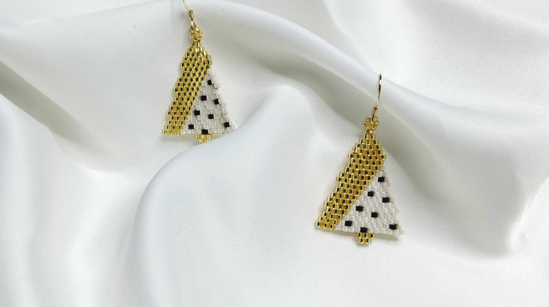 Cercei din margele de sticla japoneza si tortite goldfilled.