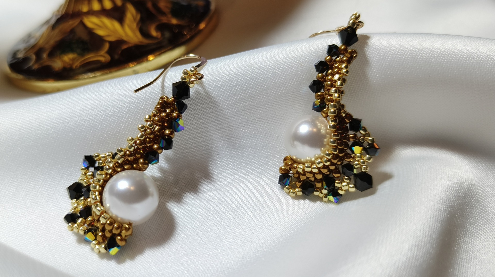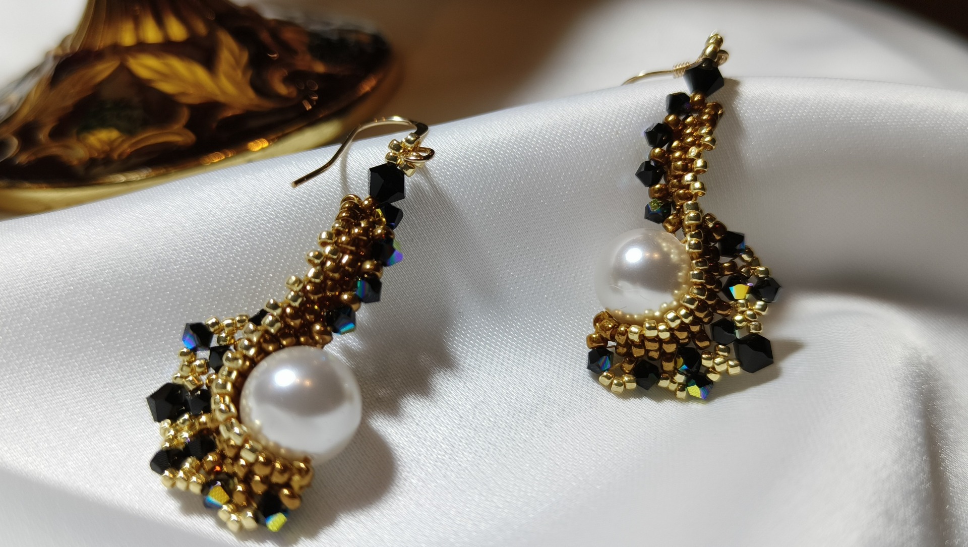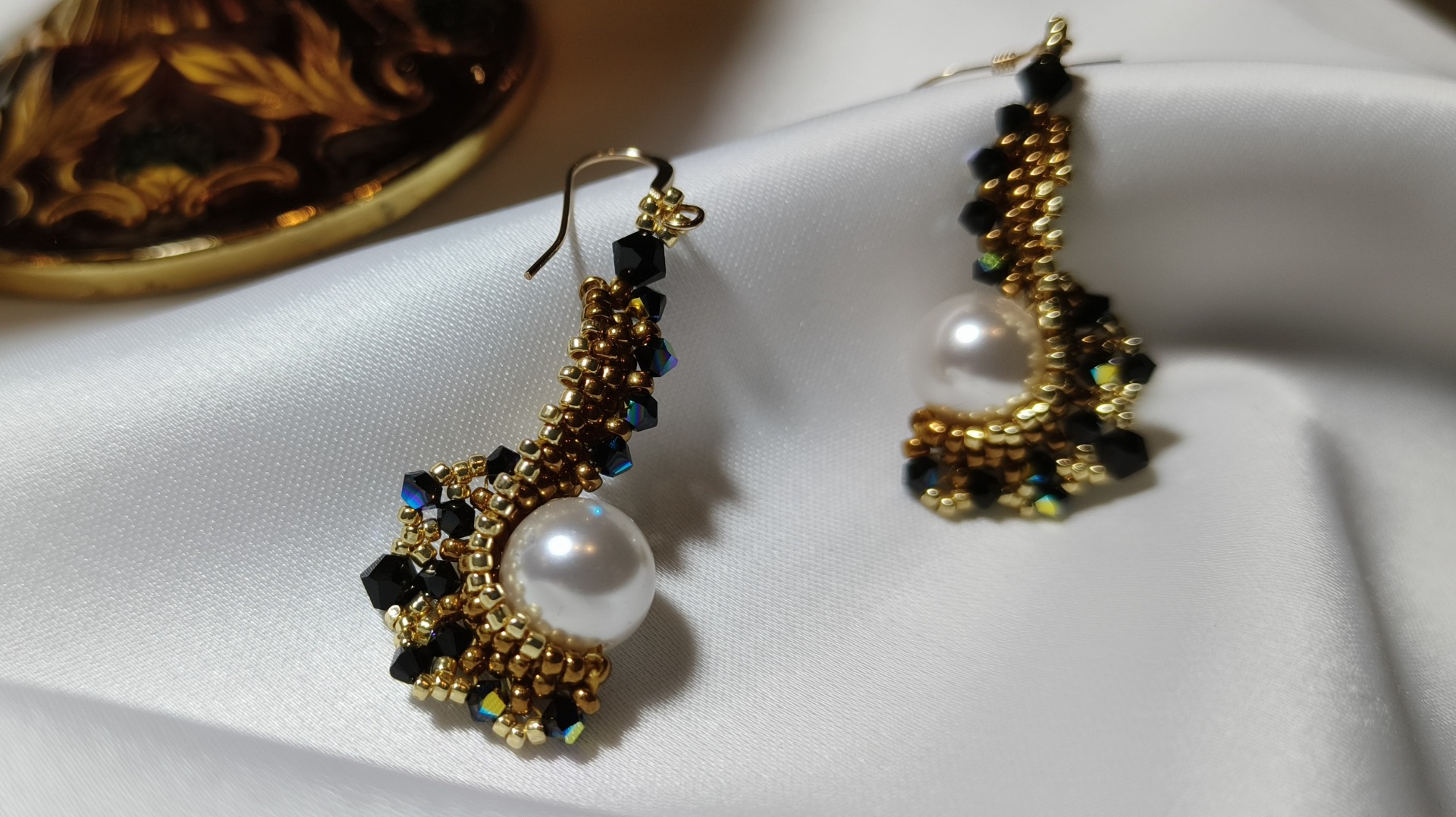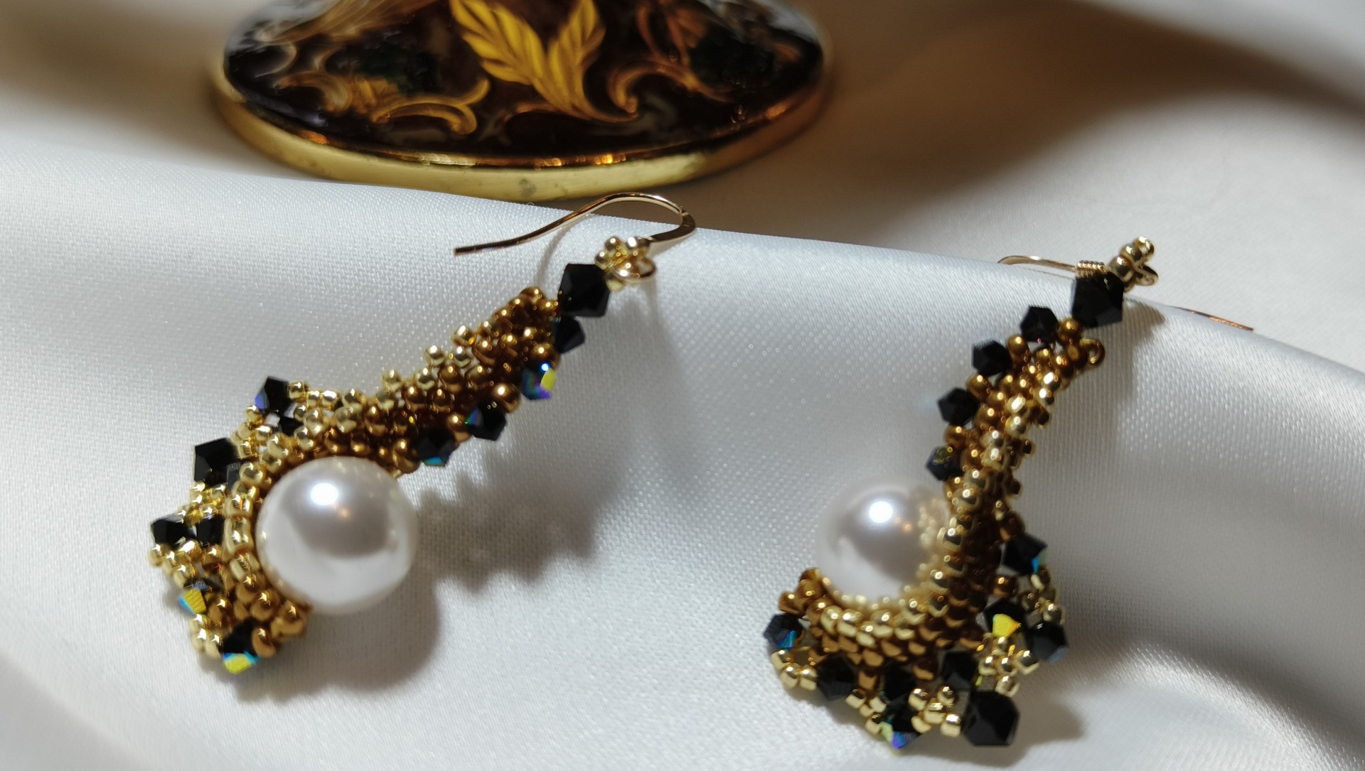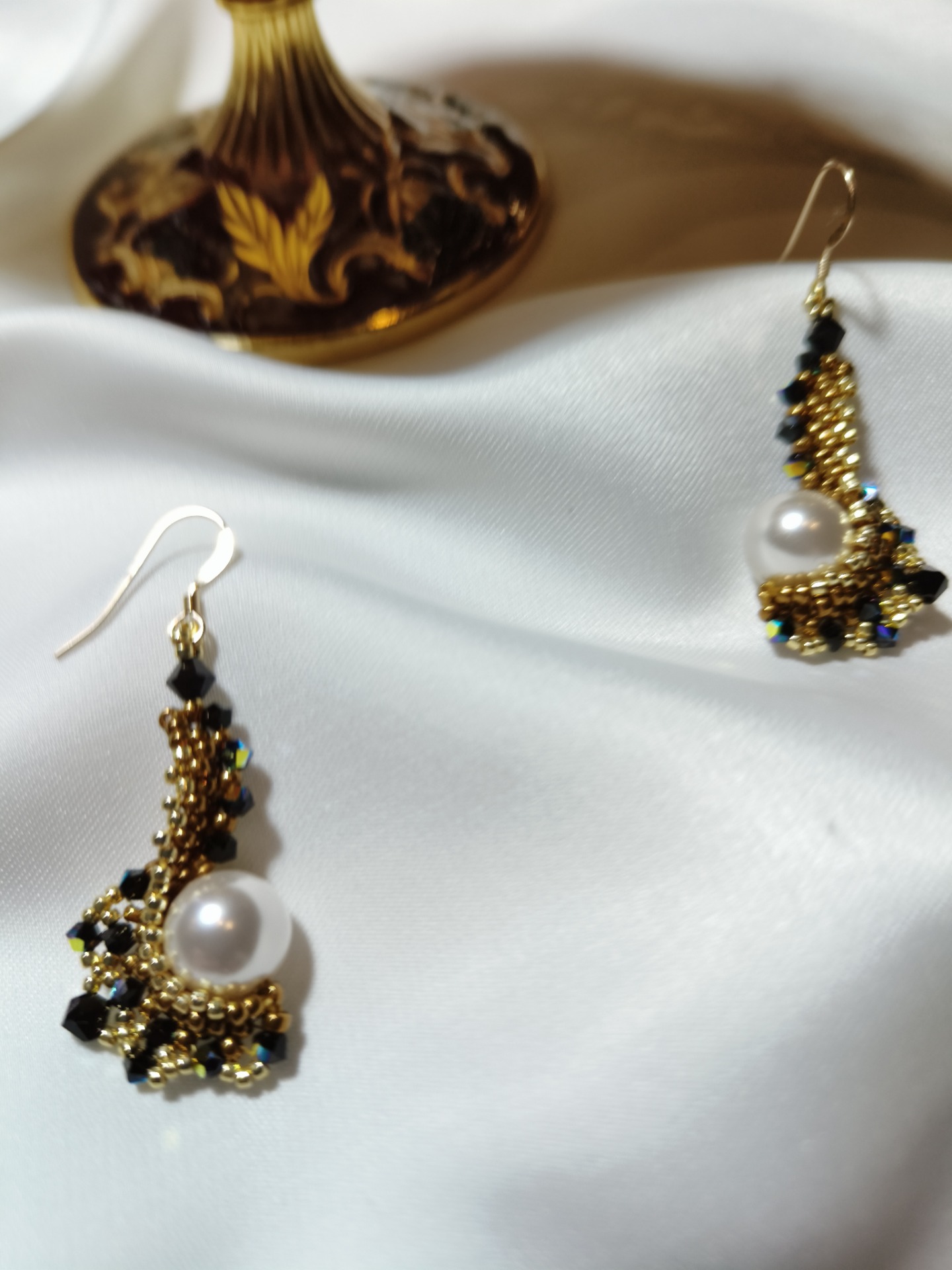 Cercei din margele de sticla japoneza, perle si cristale Austria de cea mai buna calitate cu tortite goldfilled.