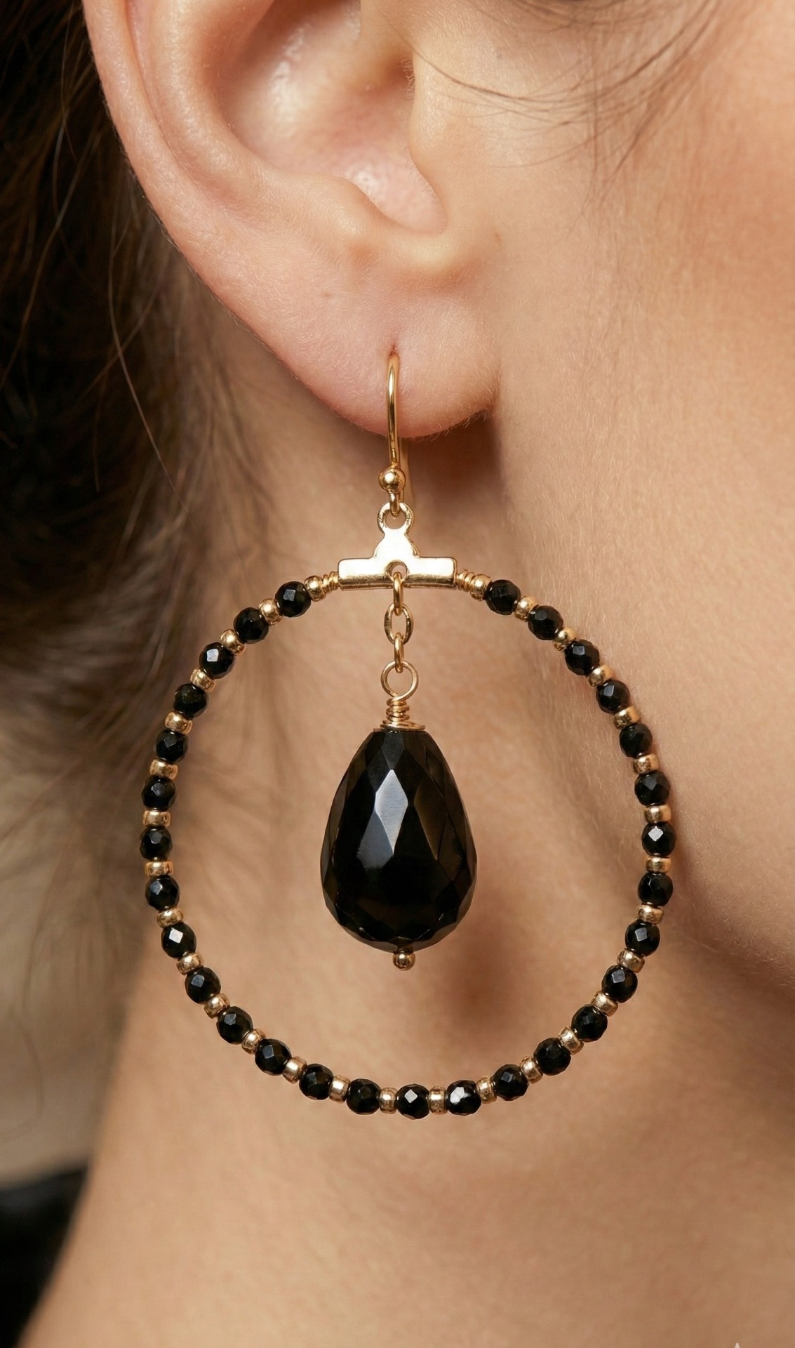 Cercei cu cristal de Onix negru si mici cristale de Spinel.