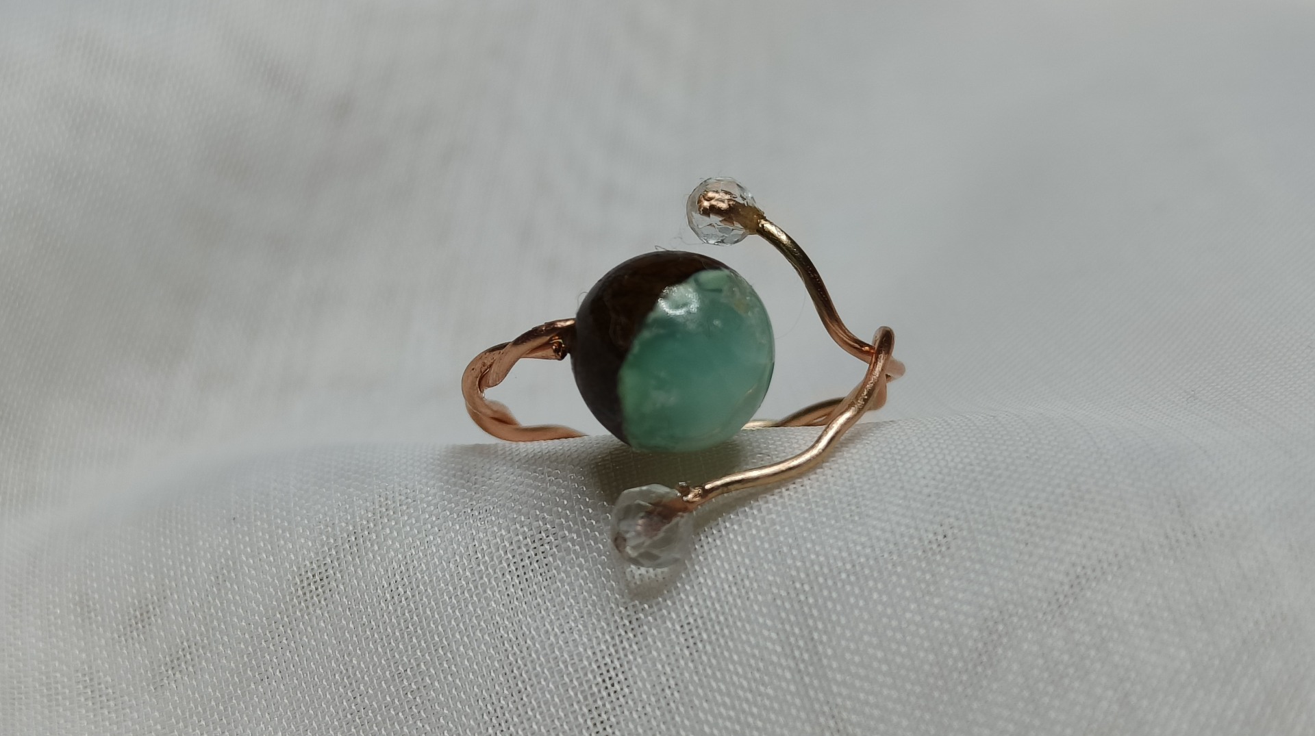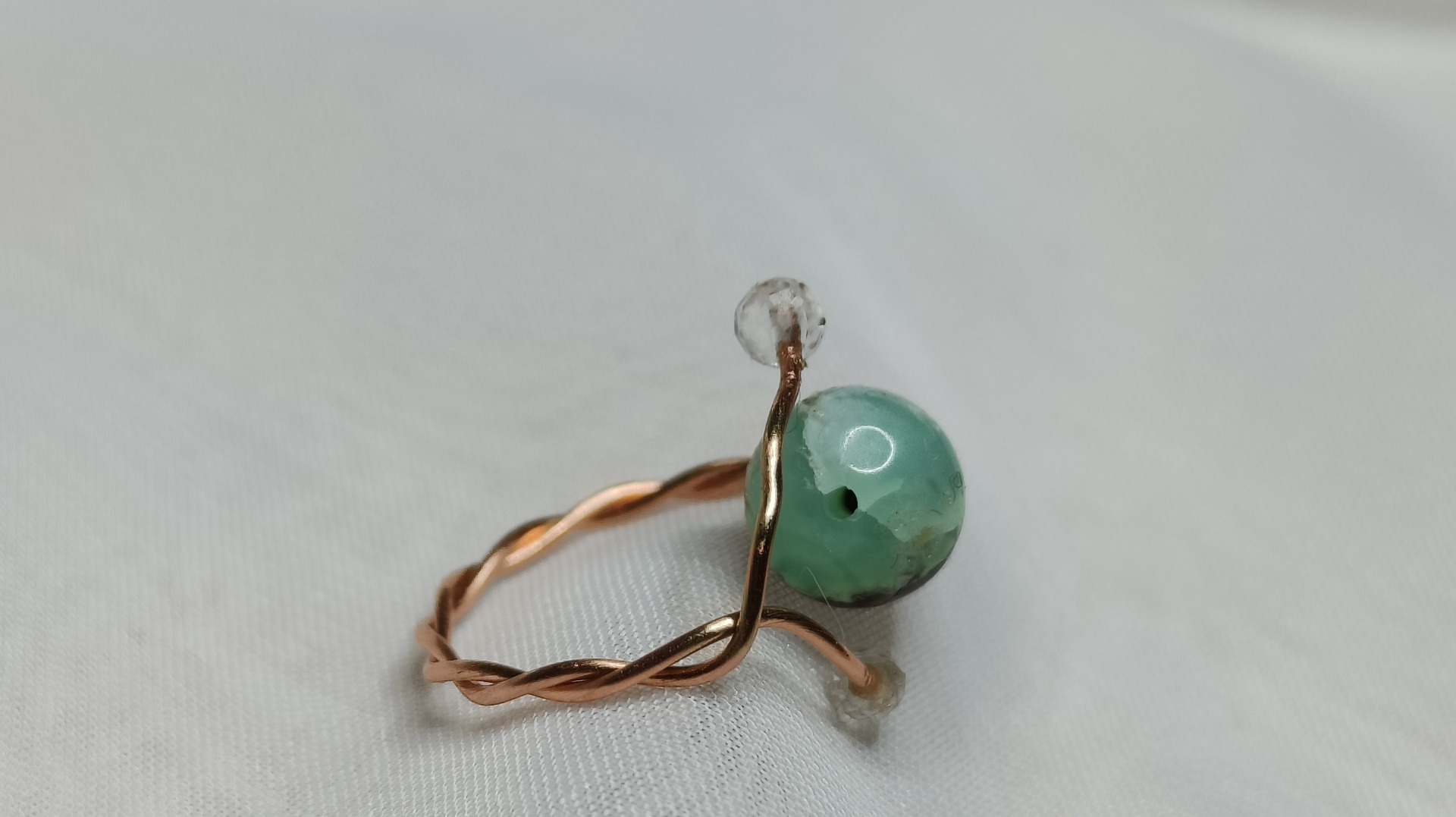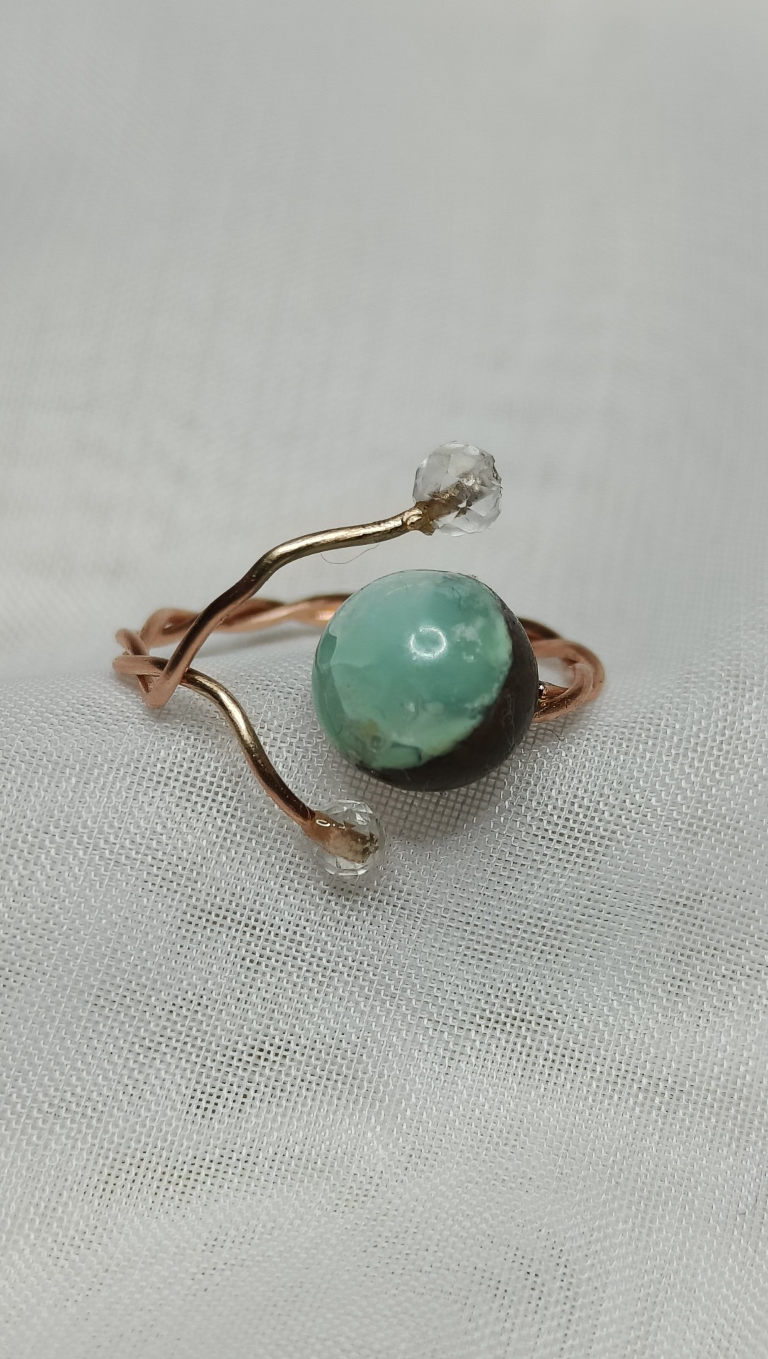 Inel din cupru, un cristal de Crisopraz si doua Cristale de Stanca
