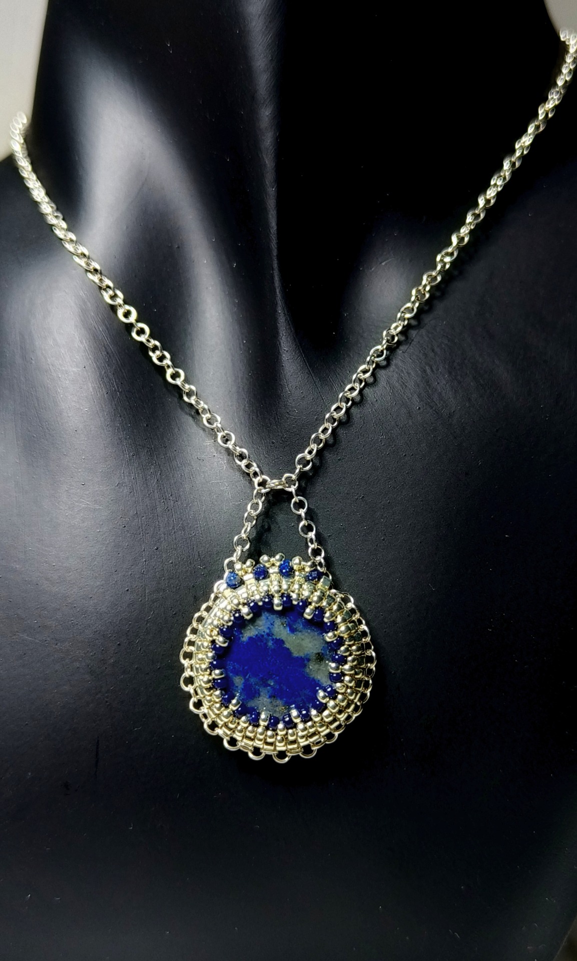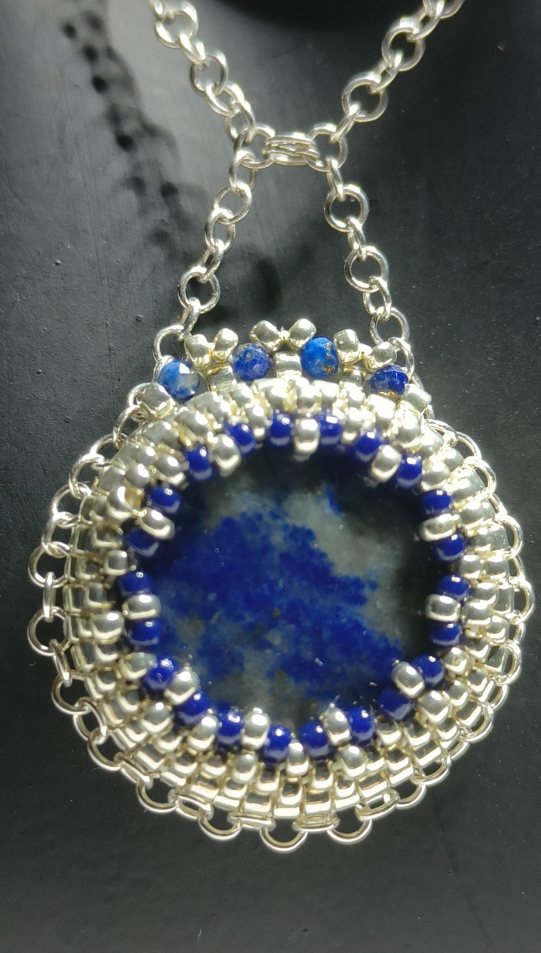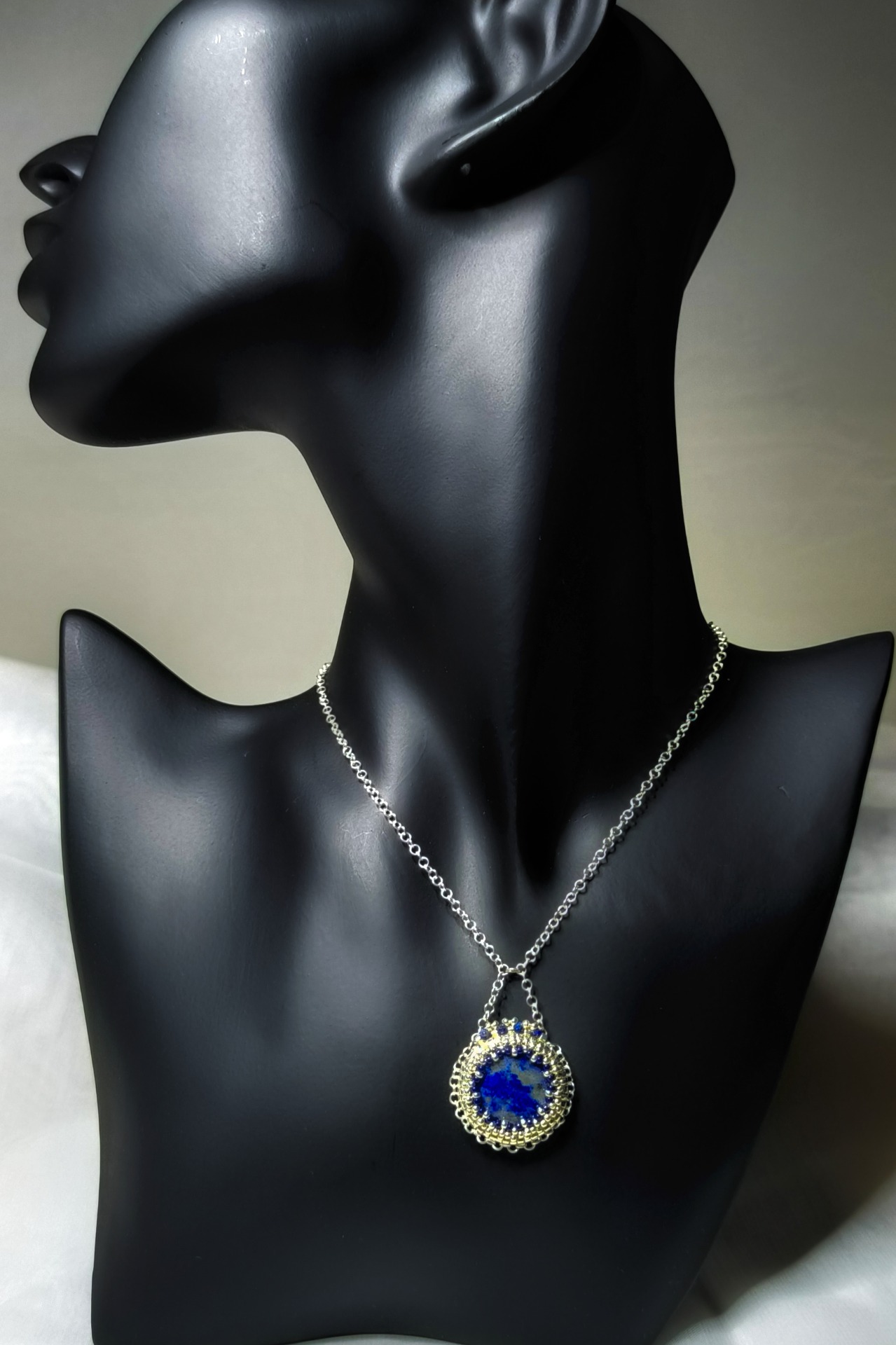 Pandant cu cristal de Lapis Lazuli pe lant argintat.