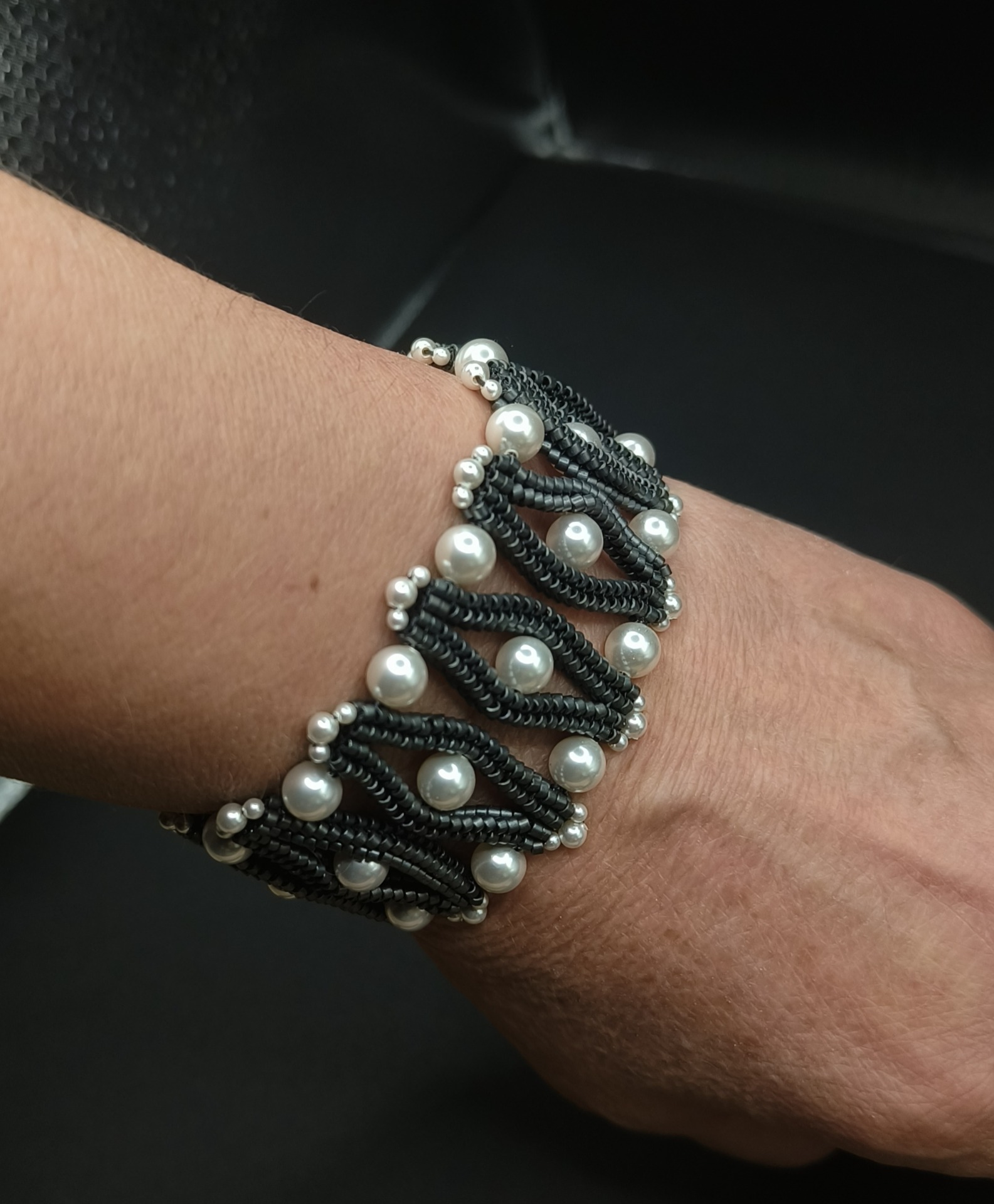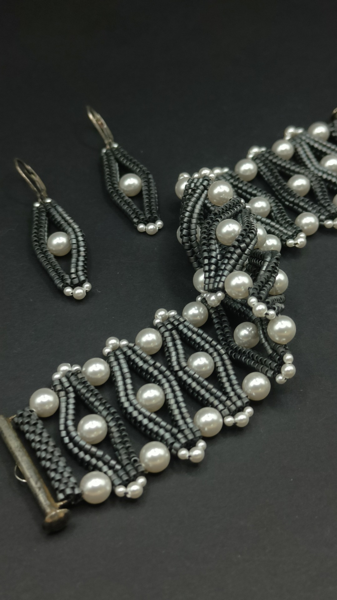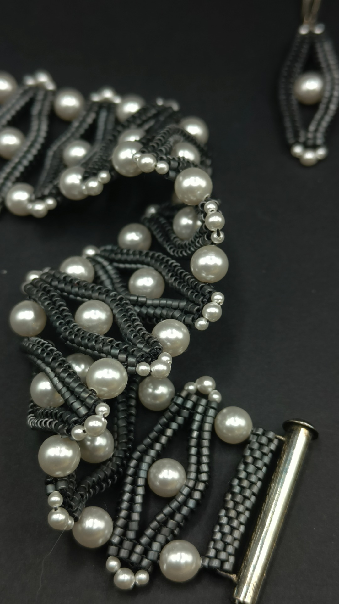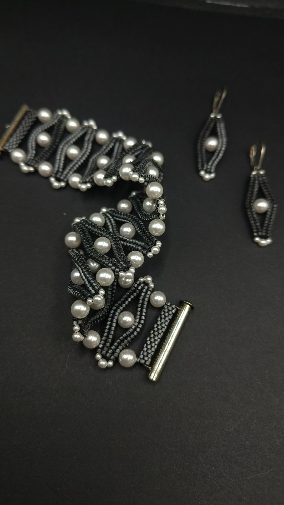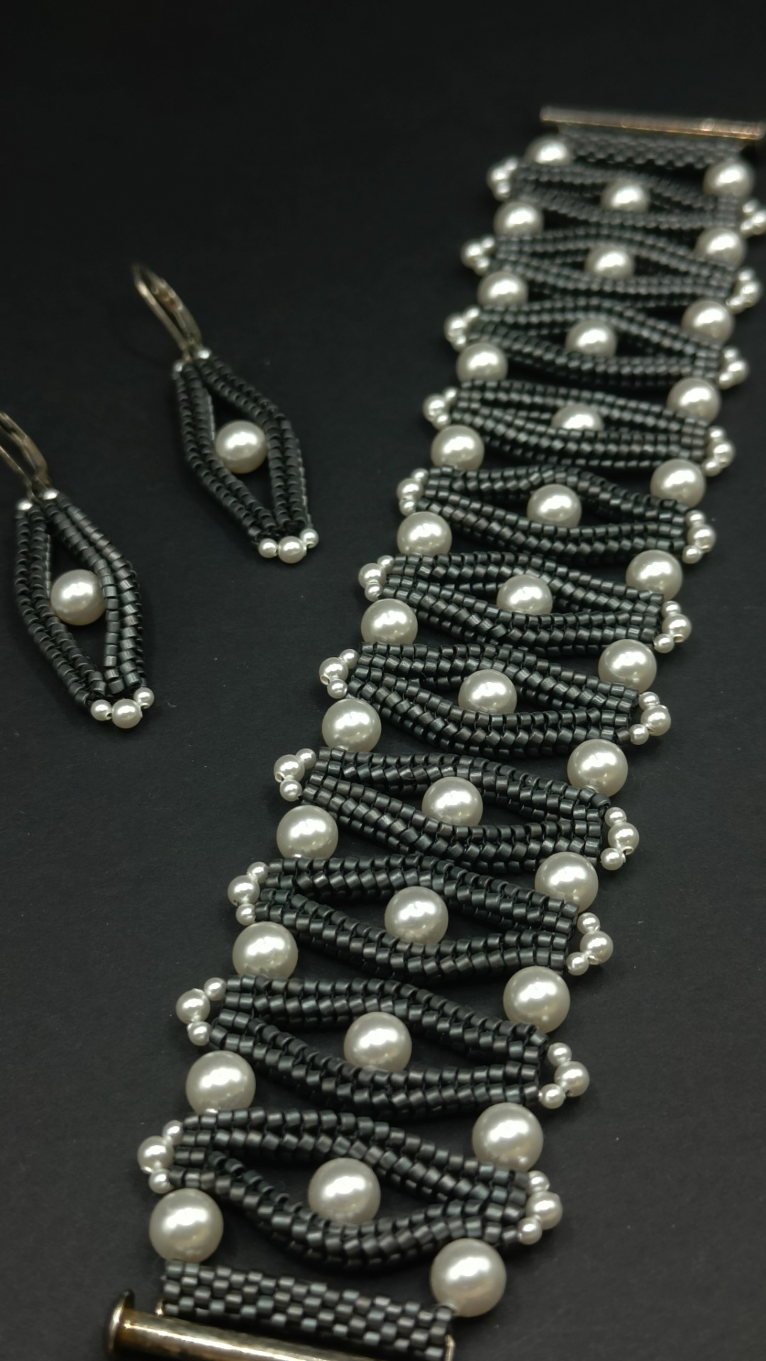 Set bratara si cercei din margele de sticla japoneza si perle Austria de cea mai buna calitate, inchizatoarea si tortitele argintate