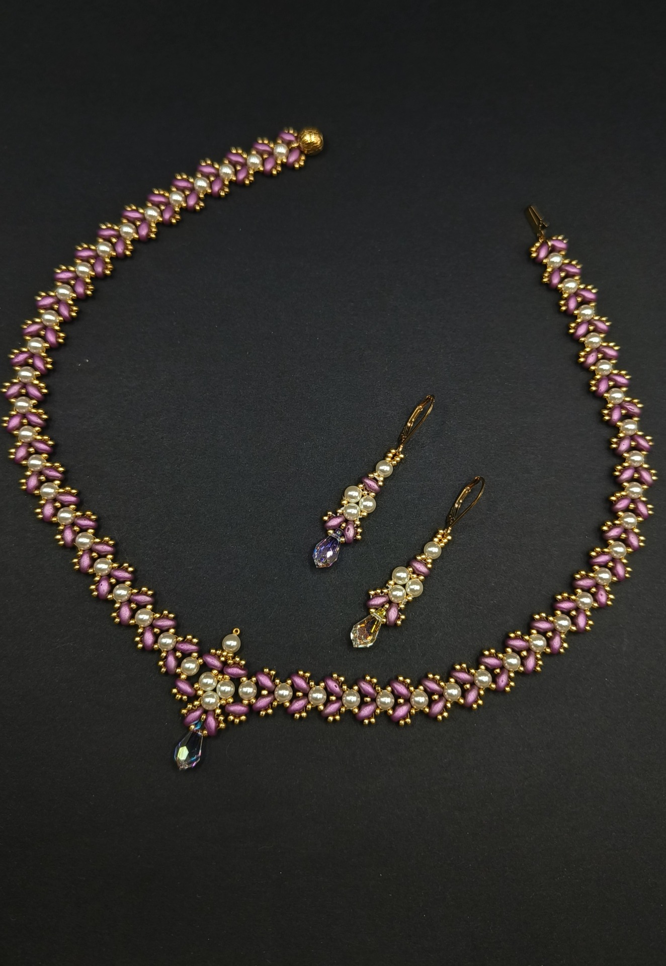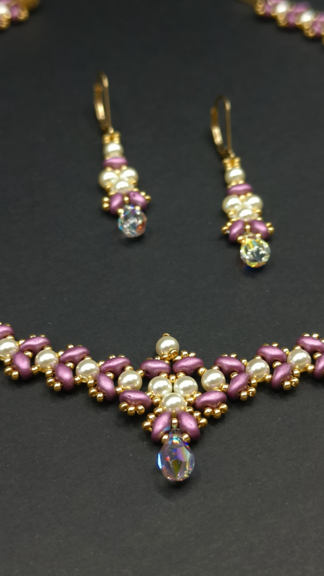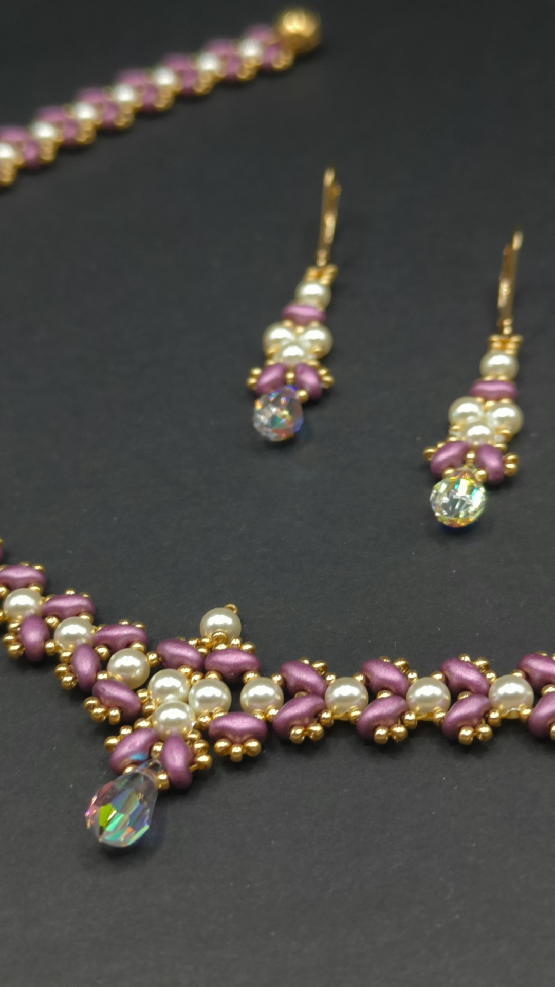 Set colier si cercei cu perle Austria, impodobite cu margele cehesti si japoneze.